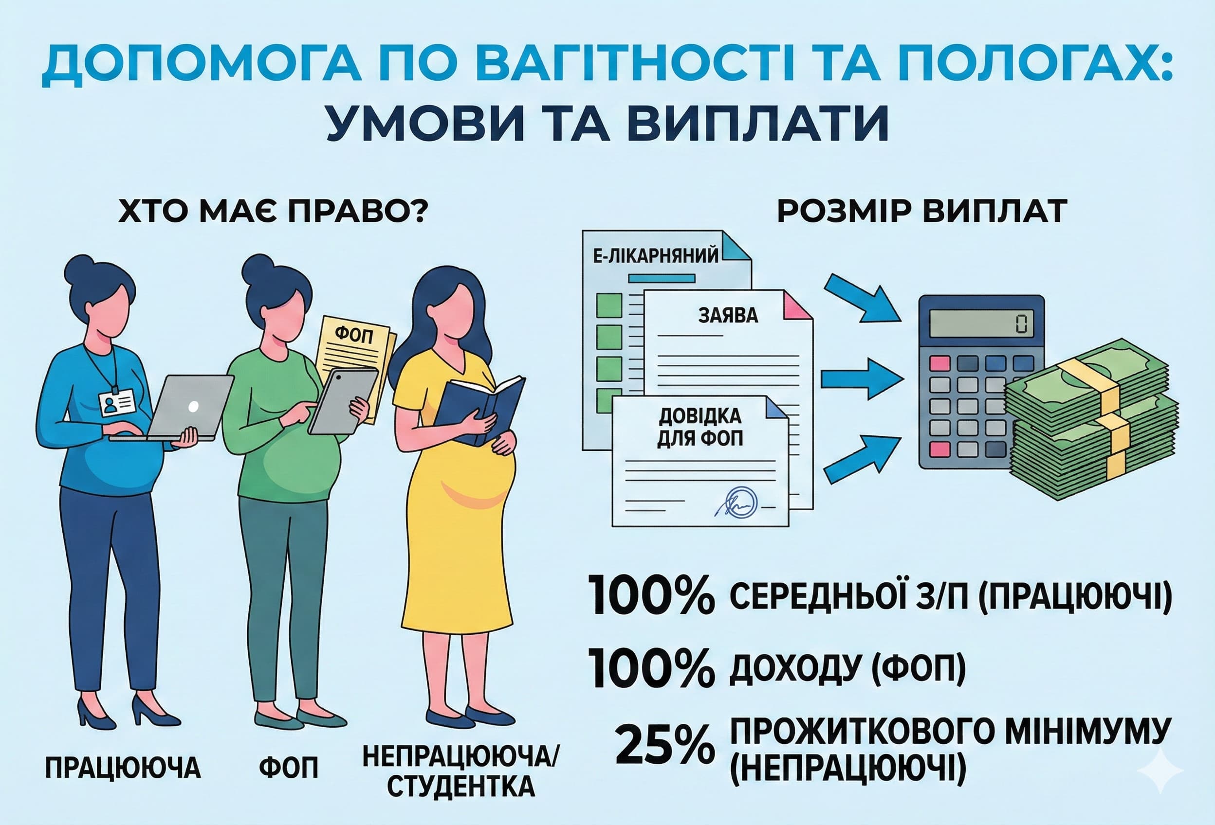 Умови призначення допомоги у зв’язку з вагітністю та пологами: хто має право та який розмір виплат