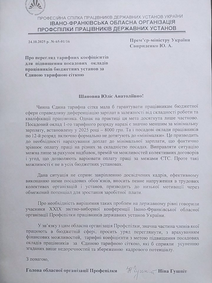 Так, у жовтні 2025 року Івано-Франківський обласний комітет Профспілки працівників державних установ України звертався до Прем’єр-міністра України Юлії Свириденко з відповідним листом, у якому наголошував на проблемі знецінення диференціації оплати праці та необхідності її відновлення.