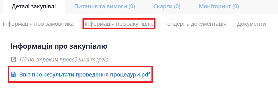 - Де знайти звіт про результати проведення процедури?